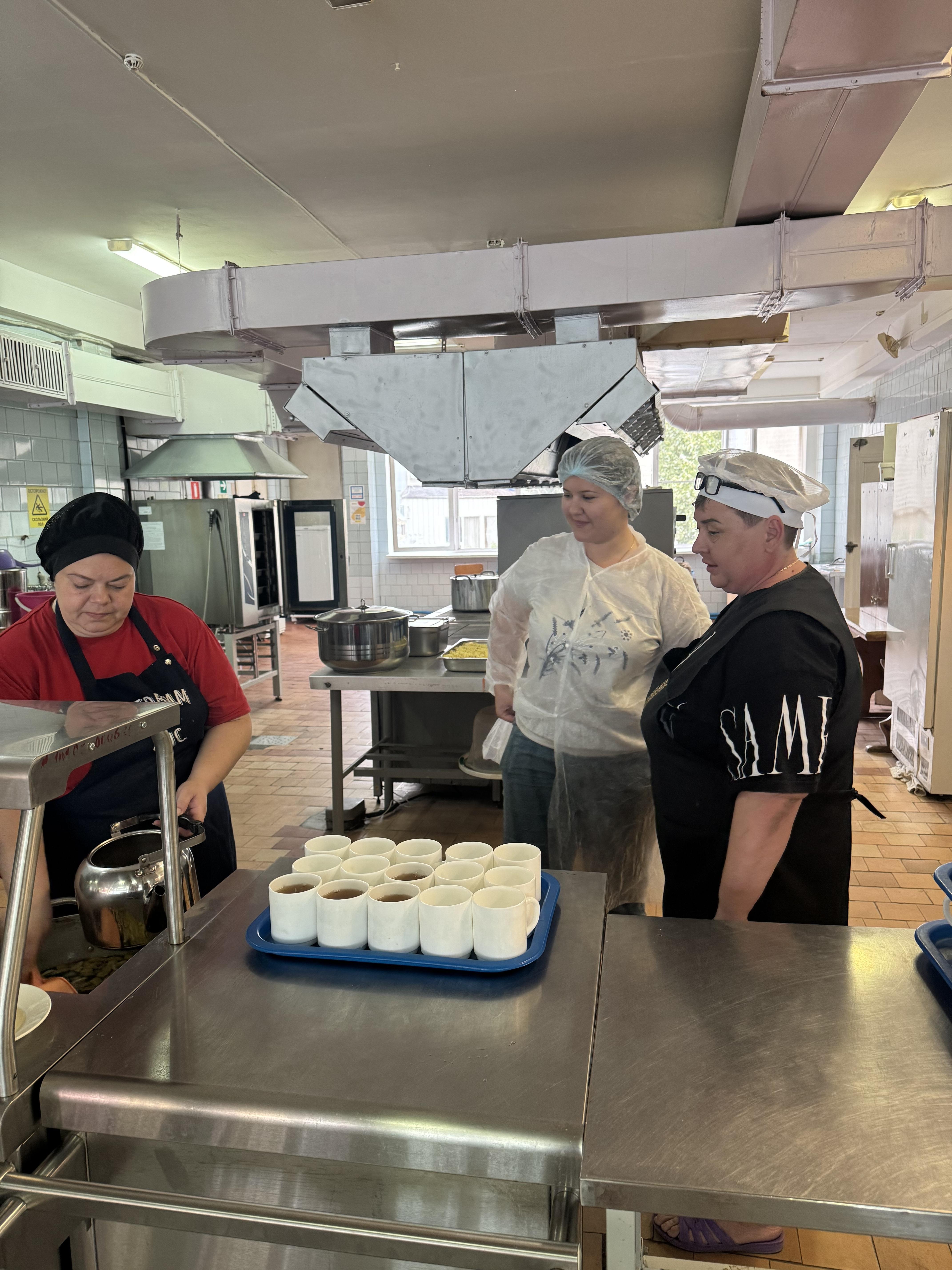 05.09.2025 представитель общественной организации "Профессионалы социального питания " Рагулина Ангелина Игоревна в рамках мониторинга школьных столовых посетила нашу гимназию. Она побеседовала с зав. производства, поварами, сотрудниками и отметила, что учащиеся получают сбалансированное горячее питание в соответствии с утвержденным меню.