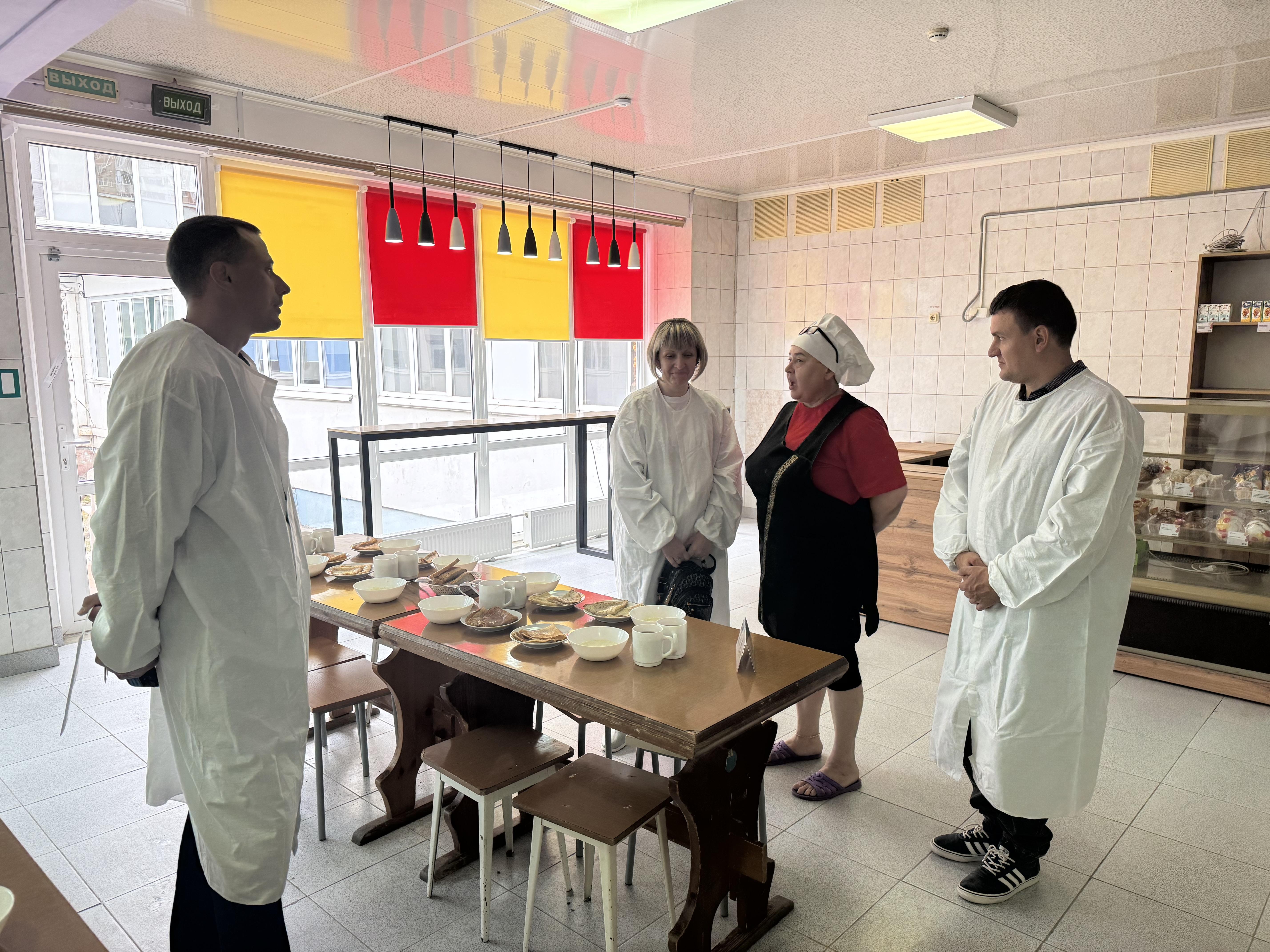 Было отмечено, что объем и температура горячих блюд соответствуют установленным требованиям и утвержденному меню. Накрытие столов происходило своевременно. Работники были одеты в профессиональную форму, имелись перчатки и маски. Классные руководители сопровождают классы при посещении обеденного зала. По мнению родителей, блюда вкусные и соответствуют нормам здорового питания!